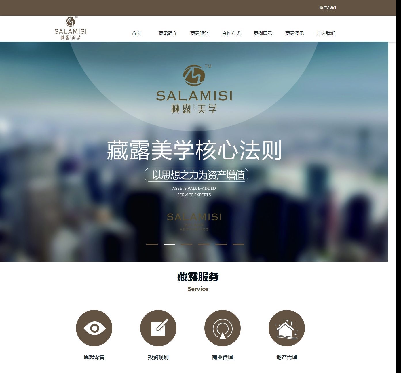 湖南藏露美学咨询集团致力于思想零售(营销思想的模块专家)、商业管理(产业商业的运营专家)、投资规划(家庭投资的规划专家)和地产代理(楼盘软开发的代理专家)四条业务线。秉承“系统胜出、个性定制”的核心法则,旨在以思想之力为资产增值。